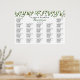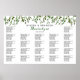 Greenery wedding seating chart poster for a large wedding reception.  Green leafy vines hang from the top of 24 x 36 inch paper.  Names and wedding date are at the top.  Customise each block of text with names of guests and seat by table number or alphabetically.