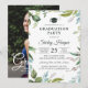 Greenery Watercolor Floral Photo Graduation Party Invitation