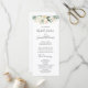 Elegant floral wedding program with pale watercolor peonies arrangement with (faux) gold foliage accents and greenery.