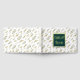 A simple yet eye-catching elegant seamless pattern featuring small watercolor leaves and sprigs in muted brown and green set against a stark white background that has a square dark teal blue / green inlay edged with real foil. A text template for your custom wording reads "guest book" on the front and your personalised title will appear on the spine. Both text templates are real foil too creating a timeless and luxury look to the cover.
