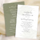 A simple Wedding ceremony program paper sheet template. This botanical elegant green, minimalist program with simple calligraphy script is perfect for any beach wedding, with elegant palm leaves,