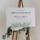 Welcome your guests with this Greenery watercolor floral greeting sign on your special day.
