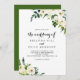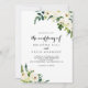 This greenery white autumn floral the wedding of invitation is perfect for a rustic wedding. The design features elegant watercolor white peonies with green foliage.