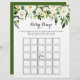 This greenery white floral baby bingo shower game is perfect for a rustic baby shower. The design features elegant watercolor white peonies with green foliage.