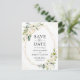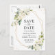 Greenery White Floral Gold Geometric Save the Date Postcard