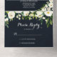 This greenery white floral royal blue wedding all in one invitation is perfect for a rustic wedding. The design features elegant watercolor white peonies with green foliage in a dark blue background.