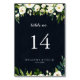 This greenery white floral royal blue wedding table number is perfect for a rustic wedding. The design features elegant watercolor white peonies with green foliage in a dark blue background. This is a double sided table number. Add each table number you need to your cart individually.