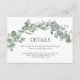 This elegant sage green and white eucalyptus greenery reception details wedding enclosure is a beautiful addition to any wedding invitation suite. The card features a typography font and watercolor botanical leaves. The card is fully customisable, so you can personalise it with your own wording and details. It's the perfect way for your guests to see the reception details for your special day.