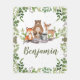 This design features illustration of rustic watercolor greens, foliages and adorable forest animals: fox, deer, bear and racoon