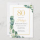 Greenery Wreath Chic Gold & Sage 80TH Birthday Invitation