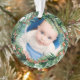 Celebrate your first Christmas with your new arrival with this elegant greenery wreath holiday keepsake ornament. Personalise with your own details and special photo. Designed by Thisisnotme©