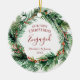 Celebrate your first Christmas engaged with this elegant greenery wreath holiday keepsake ornament. Personalise with your own details and special photo on the reverse. Designed by Thisisnotme©