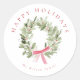 Greenery Wreath & Red Bow Holiday Classic Round Sticker
