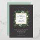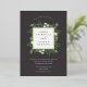 Our Greenhouse wedding invitation frames your names with an elegant square border of lush green foliage, botanical leaves, and tiny white flowers with gold foil trim. Personalise with your wedding details in classic lettering with a chic calligraphy script accent. A rich earth toned background provides a striking backdrop for your ceremony details. A beautiful choice for summer evening weddings, fall or autumn nuptials, or snowy winter weddings.