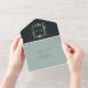 Our Greenhouse wedding invitation frames your initials with an elegant square border of lush green foliage, botanical leaves, and tiny white flowers. Personalise with your wedding details in classic lettering with a chic calligraphy script accent. A rich, inky off-black background provides a striking backdrop for your ceremony details. Attached RSVP card and folding style makes this all-in-one invitation an appealing choice. A beautiful choice for summer evening weddings, fall or autumn nuptials, or snowy winter weddings.