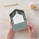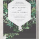 Our Greenhouse wedding invitation frames your wedding details with a geometric border of lush green foliage, botanical leaves, and tiny white flowers. Personalise with your wedding details in classic lettering with a chic calligraphy script accent. Attached RSVP card and folding style makes this all-in-one invitation an appealing choice. A beautiful choice for summer evening weddings, fall or autumn nuptials, or snowy winter weddings.
