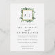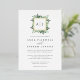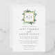 Our Greenhouse monogram wedding invitation features your initials, monogram or duogram at the top, nestled inside a square wreath of green watercolor foliage, botanical leaves and tiny white flowers on a crisp white background with gold foil trim. A modern take on the botanical trend for winter weddings, romantic fall or autumn nuptials, or elegant summer evening weddings.