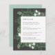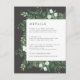 Designed to coordinate with our Greenhouse wedding collection, this elegant winter botanical guest information card features a border of green watercolor foliage, botanical leaves, and tiny white flowers framing your key wedding details, like hotel accommodations, welcome reception information, website and more on a rich earth-toned background.