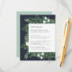 Designed to coordinate with our Greenhouse wedding collection, this elegant winter botanical guest information card features a border of green watercolor foliage, botanical leaves, and tiny white flowers framing your key wedding details, like hotel accommodations, welcome reception information, website and more on a rich navy blue background.