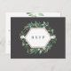 This chic green and white watercolor botanical RSVP postcard with meal or entree selections features elegant faux copper foil geometric accents on a rich earth toned background. "RSVP" appears in the center, with your full response details on back, along with your return mailing address. Designed to match our Greenhouse wedding collection.