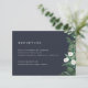 Share wedding reception details with your guests with these elegant botanical enclosure cards, designed to coordinate with our Greenhouse wedding suite. Design features your reception details, including timing, venue, and address, in crisp white lettering on a rich navy blue background adorned with tiny white flowers and green foliage.