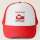 Greenlander Flag, in red and white, with the word GREENLAND below in the colors and motif of the flag. Above is a spot to add a name. Add your name for a personalized look on this trucker hat. Add someone else's name to customize a gift.