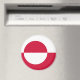 The flag of Greenland was designed by Greenland native Thue Christiansen. It features two equal horizontal bands of white (top) and red with a large disk slightly to the hoist side of centre. The top half of the disk is red, the bottom half is white.