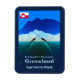 Whales with spears. A traditional travel poster-style image of two male narwhal (Monodon monoceros) "tusking," crossing their tusks, with sea ice and the mainland of Greenland in the background. Text reading "Greenland" and "Kalaallit Nunaat" (Greenland in Greenlandic) also appears. Greenland's flag depicting the setting sun reflecting off the ocean appears at upper left. Customise by adding your own additional text.