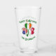 Drinking glass featuring the flags of Greenland, Ireland and United States of America, or USA, and showing in this shamrock with a different flag in each leaf on a drinking glass. Designed to celebrate St. Patrick's Day, 4th of July, and Greenlander holidays. Above the shamrock are the words THREE CULTURES, below are the words ONE YOURNAME. Words are in dark green, Celtic style, circular letters. Place your name in the correct spot for a personalised touch, or, to create a customised gift of this drinking glass,, just add someone else's name.