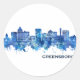 Blue Watercolor Skyline of Greensboro, a city in North Carolina