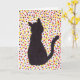Black cat (or, a silhouette of any coloured feline). Scattered dots in red, yellow and black as the background. Inside text may be changed, defaults to: "Wish you were here!"