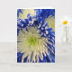 Unfamiliar with the process, I'm not sure whether these spider mums have been dyed or painted, but the end result is simply stunning. The artifically-coloured, blue petals are like dozens of fingers, surrounding the centre, palm which is cradling the naturally white flower. This gorgeous design is offered here on this beautiful, all-occasion card. Blank on the inside, it is truly appropriate for virtually any occasion and just awaits your thoughts and sentiments.