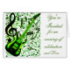 Greeting Card Horizontal Template, Green and black Guitar with music notes.