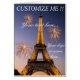 A greeting card with a photograph of the Eiffel Tower and fireworks, personalized map possible
