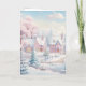 Greeting Card Pink and Snowy Village Holiday Card