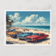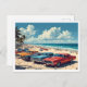 AI Reimagined Greeting from Daytona Beach 1960s Style Illustration, Muscle Cars, Colourful Nostalgic Art Postcard