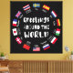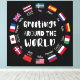Cheerful world travel theme featuring greetings in different languages with country flags. Perfect for travelers, language lovers, and cultural enthusiasts who enjoy international diversity.