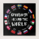 Cheerful world travel theme featuring greetings in different languages with country flags. Perfect for travelers, language lovers, and cultural enthusiasts who enjoy international diversity.