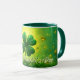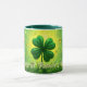 A stylish St. Patrick's Day motif with a large, green four-leaf clover in the centre, surrounded by a natural, festive atmosphere. The soft light accents and floating shamrocks give the image a magical and cheerful feel, fitting for the Irish holiday.