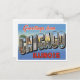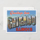 Celebrate the Windy City with this magnificent vintage-style "Greetings from Chicago, Illinois" postcard! This classic large-letter design showcases the city name in bold script, set against a bright blue sky with vibrant red lettering for the state name. Inside the large block letters, you'll find panoramic vignettes of Chicago's famous downtown skyline, modern skyscrapers (like the Willis Tower/Sears Tower), the Chicago River, and historic architecture. This design perfectly captures the powerful urban energy of the city.