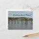 Rustic poles stick out of the water in front of this little Maine town. Customisable title. Part of my Maine Gift Store; stores in Maine are invited to buy these products in bulk to sell in their stores.