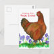 A "greetings from Rhode Island" postcard decorated with a Rhode Island Red hen chicken with blooming purple violets illustrated with ink and watercolor. Inspired by the state bird and state flower of Rhode Island. You can edit or remove the text to fit your needs.