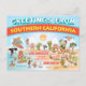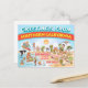 Bright and charming greeting card shows a whimsical cartoon of Southern California - cute characters enjoy the warm California sun who shines high above it all.