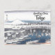 This postcard shows pedestrians crossing the Nihon bridge over the river in the Nihonbashi District of Tokyo, during winter the winter of 1844 after a snowfall, with view of Mount Fuji in the distance.