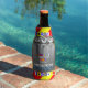 Greetings from Newport RI Nautical Signal Flags personalised Bottle Cooler. Keep your drinks cool while sailing on your yacht with this trendy nautical flags with international nautical sign code flags and text "Greetings from" and fully customisable text and marine signal code flags "Newport" (Fill in small caps your name, yacht club, company or location for an automatic conversion into the maritime sign code language, how cool is that?!?) and sailing boats and yachts in a marina bottle cooler. A unique personal nautical souvenir gift for your sailing and watersports loving friends, sailboat owners, skippers and captains or family members from Newport Rhode Island or great nautical party or wedding idea!