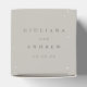 Elegant greige winter wedding favour boxes featuring a border of hand painted snowberries and eucalyptus. All text is fully editable so you can easily change the font style/colour/size and delete or move text. Coordinating items available. Please note the box size before ordering.