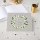A greige winter wedding guest book featuring hand painted snowberries and eucalyptus arranged into a beautiful botanical wreath. The back features a photo of the happy couple. All text is fully editable so you can easily change the message/style/colour/size. Other designs, colours and coordinating items are available in my store.