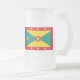 The national flag of Grenada was adopted upon independence from the United Kingdom, 7 February 1974. The six stars in the red border stand for the country's six parishes, with the middle star, encircled by a red disc, standing for the capital, Saint George's. The symbol in the hoist represents a clove of nutmeg, one of the principal crops of Grenada. It also represents a link to Grenada's former name, which was the "Isle of Spice".