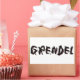 the name of the monster that Beowulf must destroy, here in black with a blood red shadow