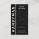 In an elegant dark grey cover, card is divided into two portions. A vertical white line demarcates this two sections. Over at the left wall is the inverted job title "HANDYMAN". A grey abstract home landscape design is over at the right side of the card. Over at the top lies your prestigious name with a slogan caption and the contact details near the base. You can change the caption remarks to the slogan to suit your own publicity needs.